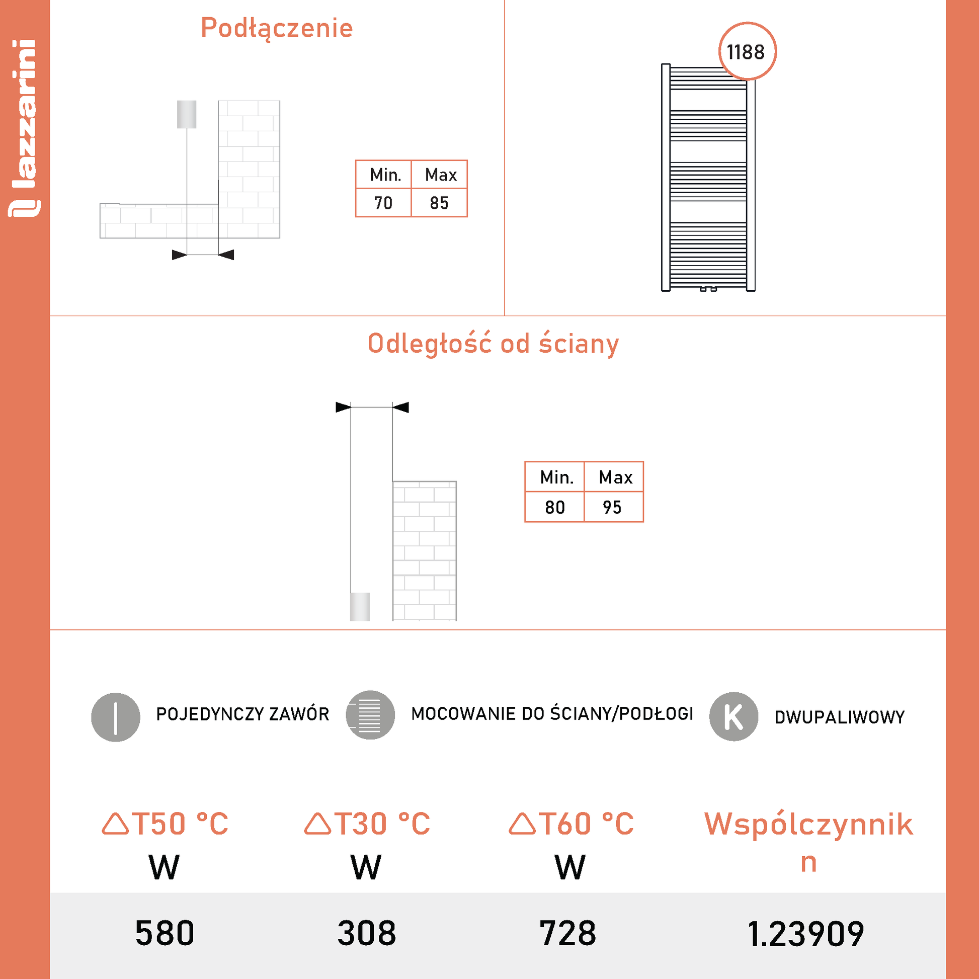 Jeżeli chcesz sprawdzić informację techniczne grzejnika zajrzyj do sekcji "Dane Techniczne".