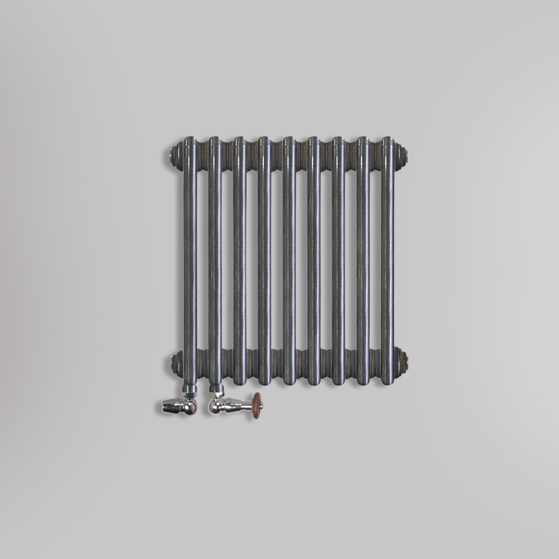 Wielokolumnowe grzejniki dekoracyjne w kolorze antycznego srebra to ucieleśnienie szlachetnej prostoty i ponadczasowego stylu. Chłodna, srebrzystoszara powłoka proszkowa o subtelnym metalicznym połysku nadaje każdemu pomieszczeniu wyrafinowany i elegancki wygląd. Wielokolumnowa budowa zapewnia doskonałą efektywność cieplną, a wyjątkowe wykończenie sprawia, że grzejnik ten staje się prawdziwą ozdobą każdego wnętrza.